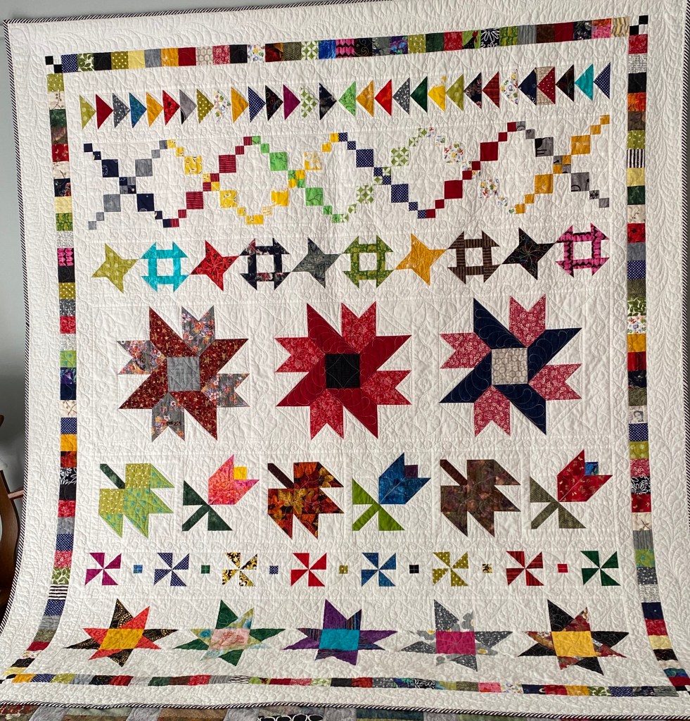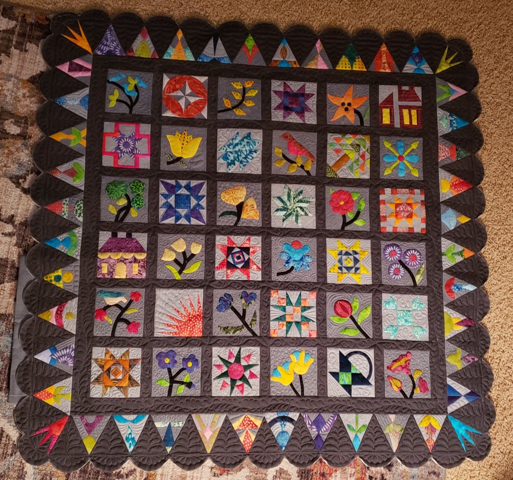 Carol V – This was a UFO finally rearranged and finished. Quilted by Kelly Borns.