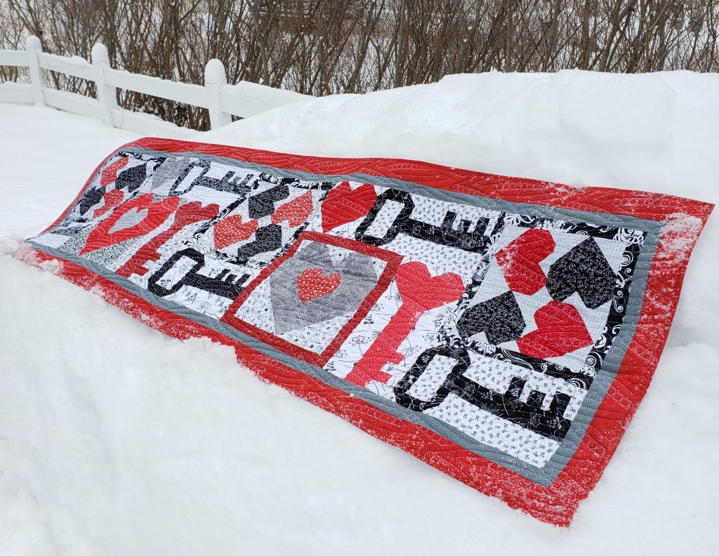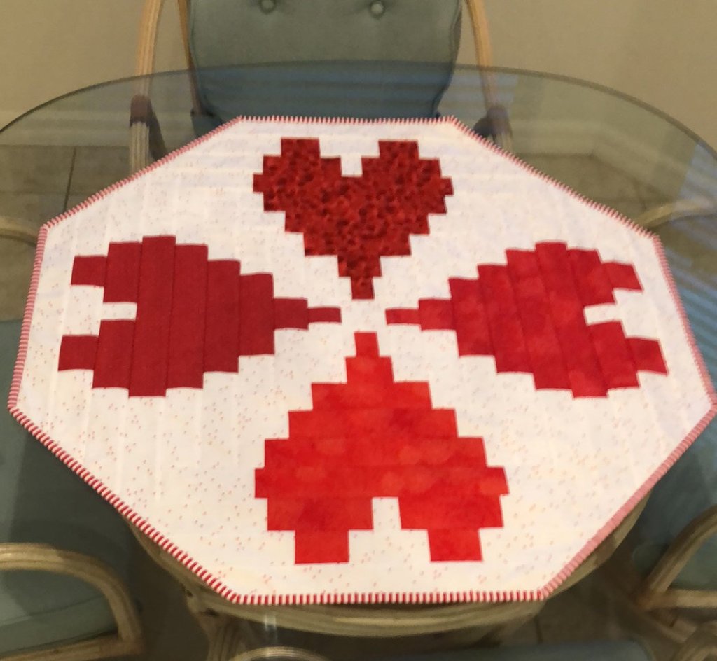 Cyndi P – True Hearts table topper is a Fast and Furious pattern from GEDesigns.