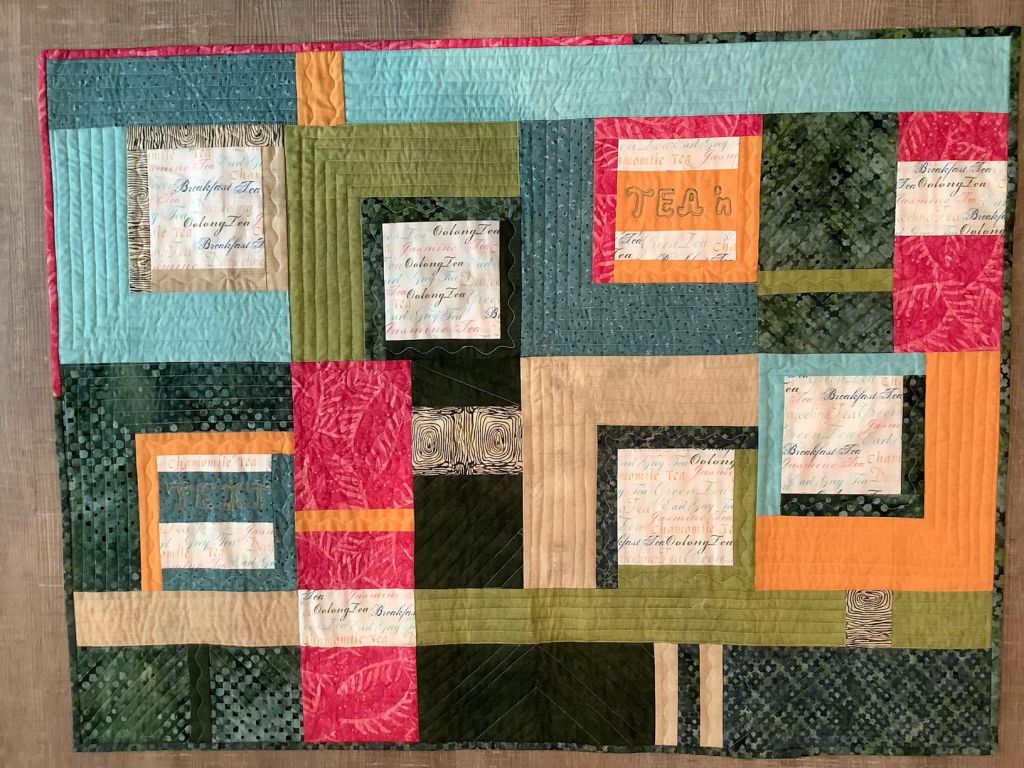 The above example uses fabric that has varieties of tea printed on it and shows that tea is a favorite wintertime beverage of the quilter.