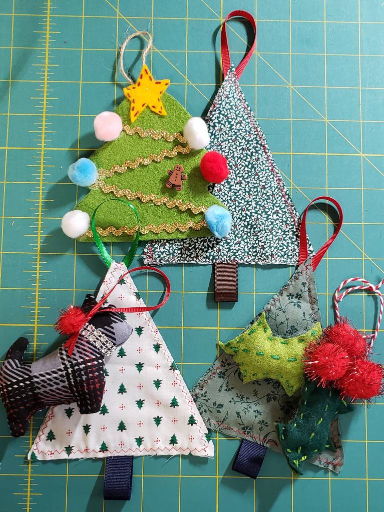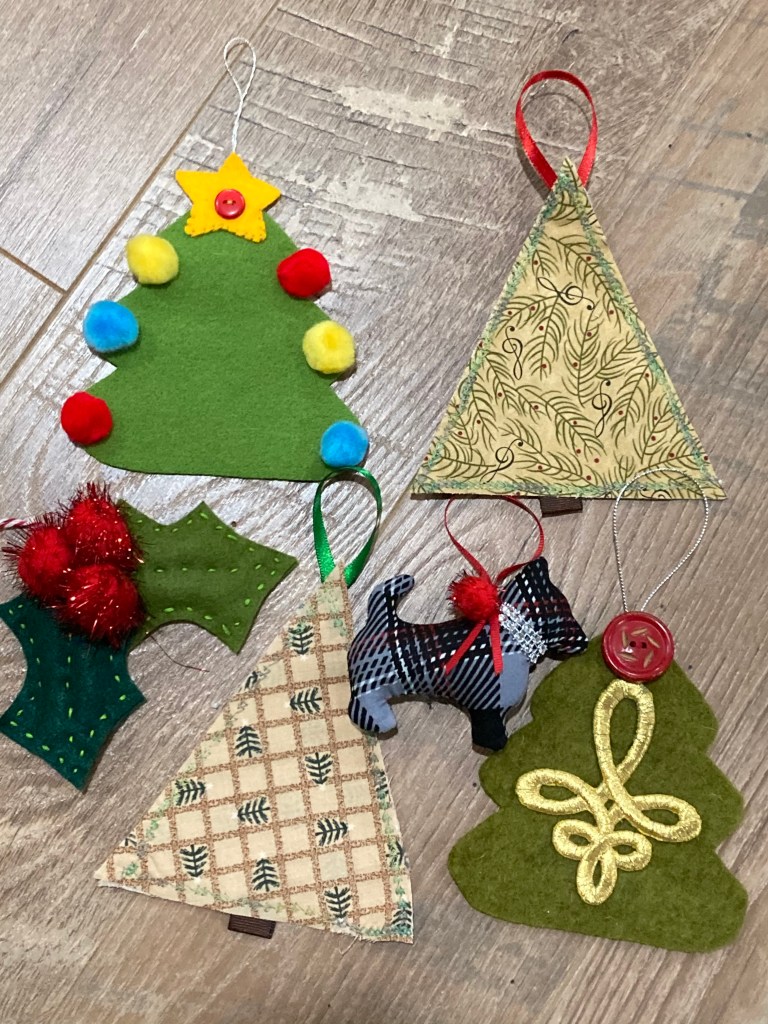 Barb M’s ornaments from the kit supplied by BRQG for November meeting.