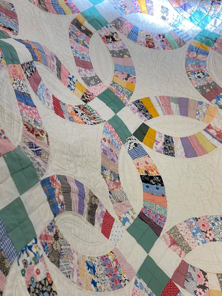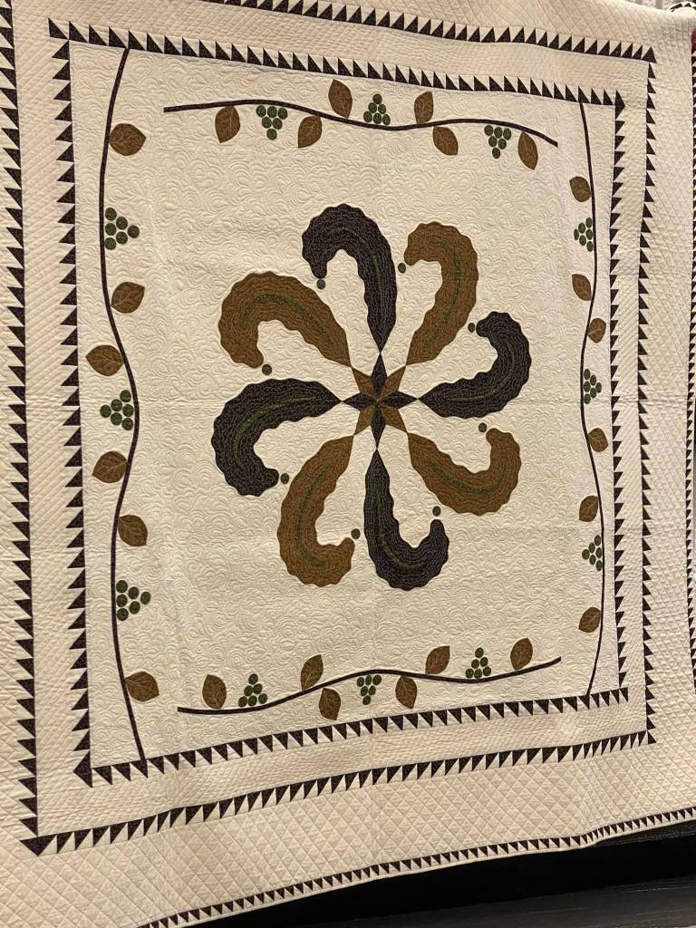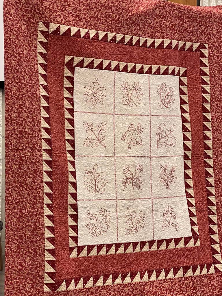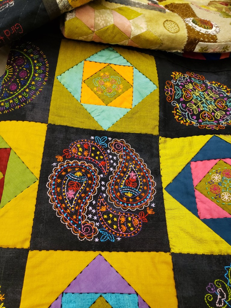 Amazing hand embroidery and quilting on these quilts. Lots of wool and found items on these quilts. Pictures do not do them justice!