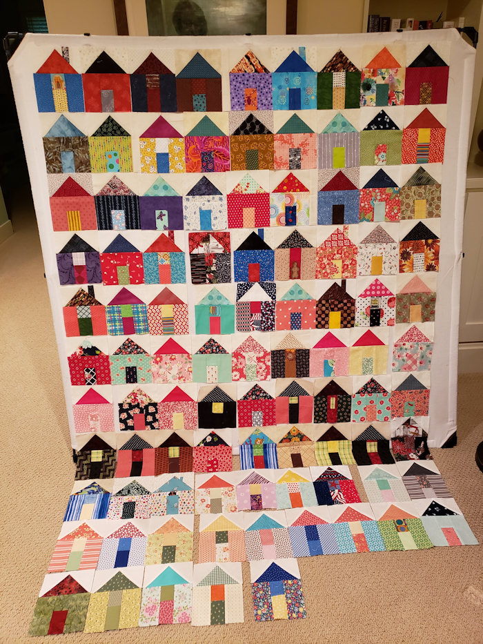 3) House table runner from Modern Holiday Table Runner pattern—download from Fat Quarter Shop (on sale now and includes several holiday runners)
